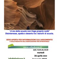 Adolescenti e rifiuto della scuola Le dottoresse di Alia vi accolgono per parlarne insieme martedì 26 aprile e 3 maggio dalle 18.00 alle 20.00 via Stoppani 12 MIlano