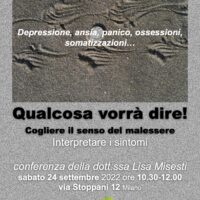 Cliccare per guardare il VIDEO della conferenza, della dott.ssa Lisa Misesti depressione, ansia, panico, ossessioni, somatizzazioni: Qualcosa vorrà dire! Cogliere il senso del malessere Interpretare i sintomi