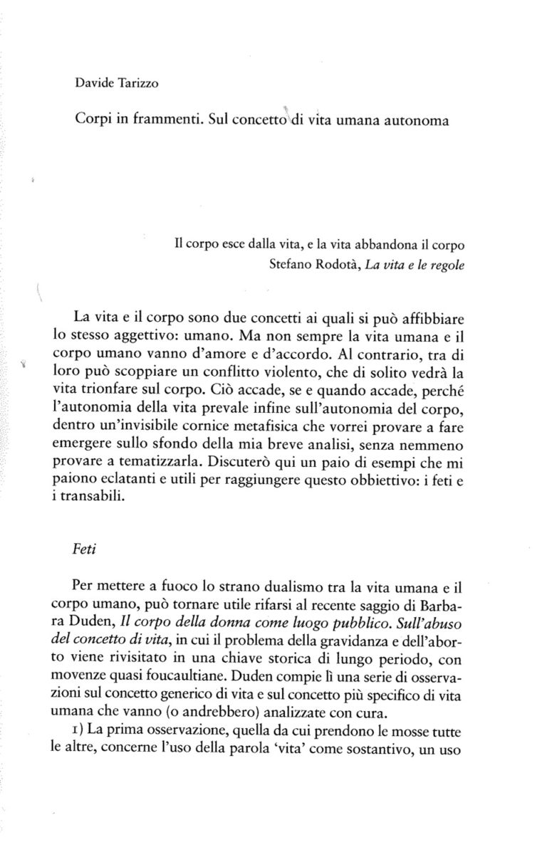 Davide Tarizzo, Corpi in frammenti, in Anatomia del corpo, anatomia dell’anima, (a cura di Aldo Trucchio) Quodlibet, Macerata 2008.
