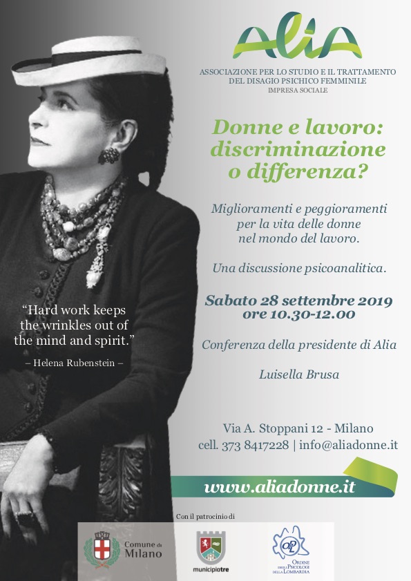 Alia svolge attività di studio e ricerca volte ad identificare ed interpretare i mutamenti dell’ identità femminile, paralleli ai cambiamenti storici, culturali, scientifici ed economici di oggi. La ricerca mira ad individuare le nuove forme di sofferenza psichica che corrispondono ai mutamenti in atto e i punti di frizione del legame sociale tra i sessi.