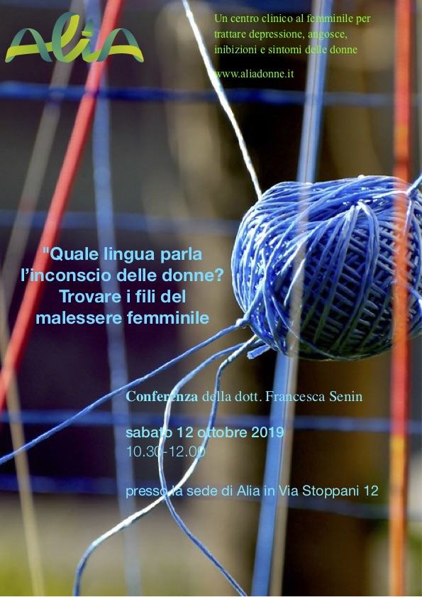 sabato 12 ottobre ore 10.30-12.00 Quale lingua parla l’inconscio delle donne? Trovare i fili del malessere femminile