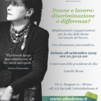 Donne e lavoro: discriminazione o differenza? Miglioramenti e peggioramenti per la vita delle donne nel mondo del lavoro. Una discussione psicoanalitica. sabato 28 settembre 2019 ore 10.30-12.00