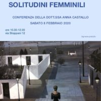 sabato 8 febbraio 2020 ore 10.30-12.00 SOLITUDINI FEMMINILI Conferenza della dott.ssa Anna Castallo La solitudine è un’esperienza molto presente nel femminile, ma non tutte le donne la incontrano allo...